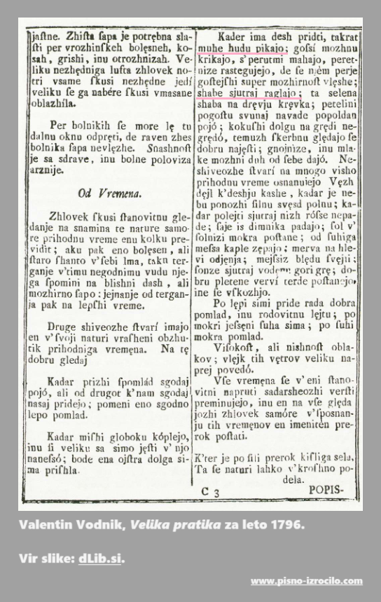 Slika prispevka O vremenu: Valentin Vodnik, Velika pratika za leto 1796, povezava.