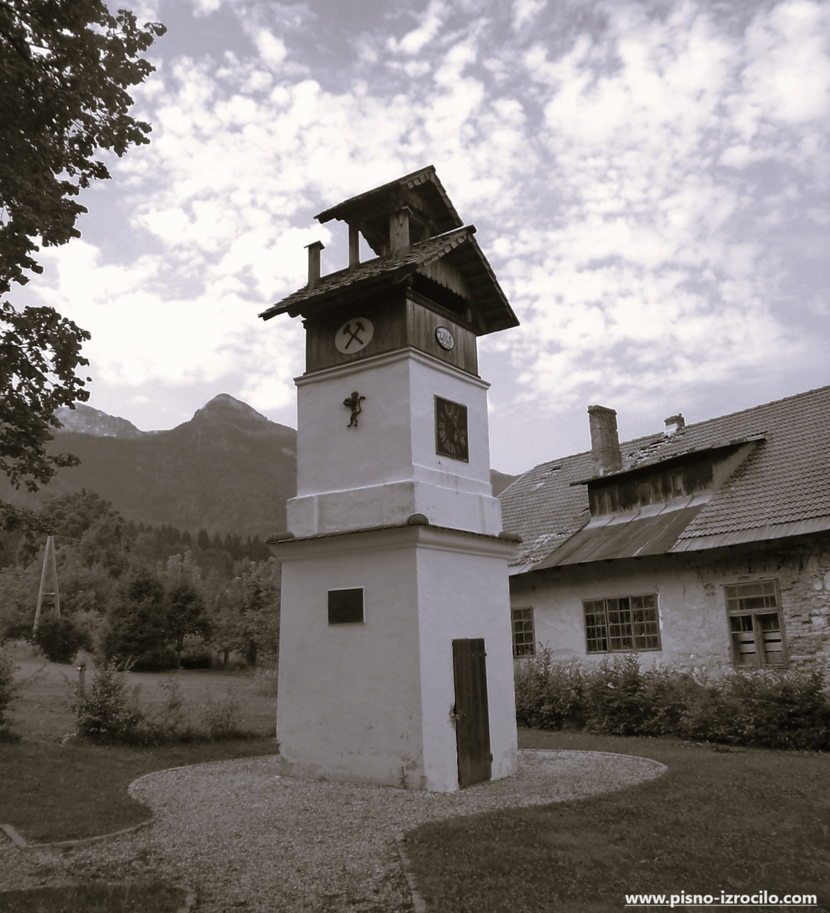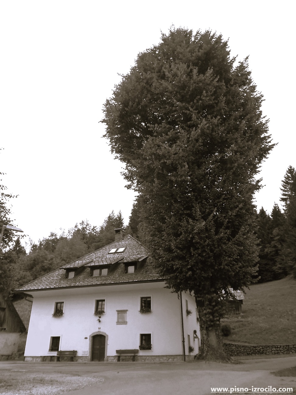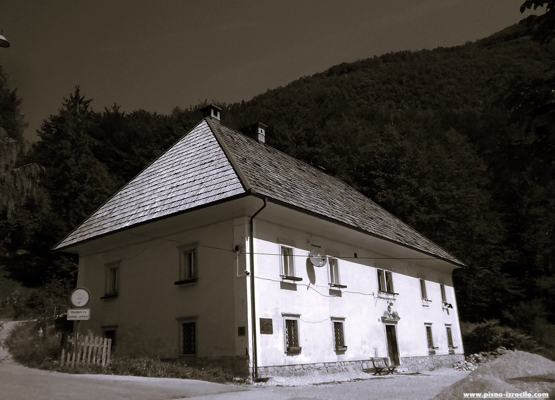 Tam najdemo bakrorez Vincenca Dorfmeistra, ki prikazuje slap Savico, Vršac in Triglav.