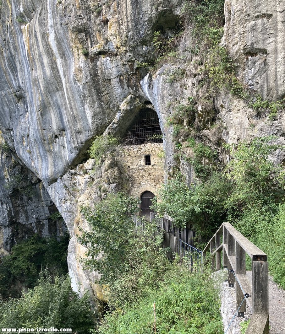V Konjskem hlevu, prednjem delu rova, so ljudje našli zatočišče že v prazgodovini, v srednjem veku in še potem pa so ga uporabljali za – konjski hlev. Od tod poteka tudi krožna pot po jami, ki na plano pride pri t. i. Fiženci[22] – in skoraj zagotovo sta prav tu hodila tudi naša prijatelja iz Vrtca, ki sta po prihodu na svetlo uzrla razgled na cerkvico. Taka je bržkone verjetna interpretacija, pa čeprav J. O. uporabi besedico tu; kot bi iz jame izstopila prav pri cerkvici (?). Vseeno menim, da sta izstopila pri Fiženci in v bližini ugledala cerkev.
