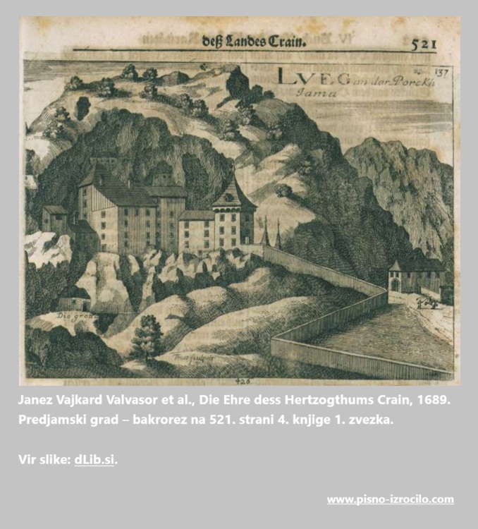 Naj uvodoma poudarim še, da ta prispevek seveda ni temeljit niti sistematičen pregled vseh bistvenih zapisov, ki obstajajo o Predjamskem gradu, pač pa osebni izbor nekaj najzanimivejših, ki sem jih našla na portalu dLib in drugje. Navedbe iz teh virov mestoma dopolnjujem tudi s pojasnili iz sodobne literature.